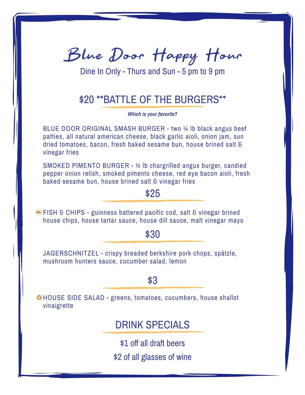 Thurs & Sun Happy Hour